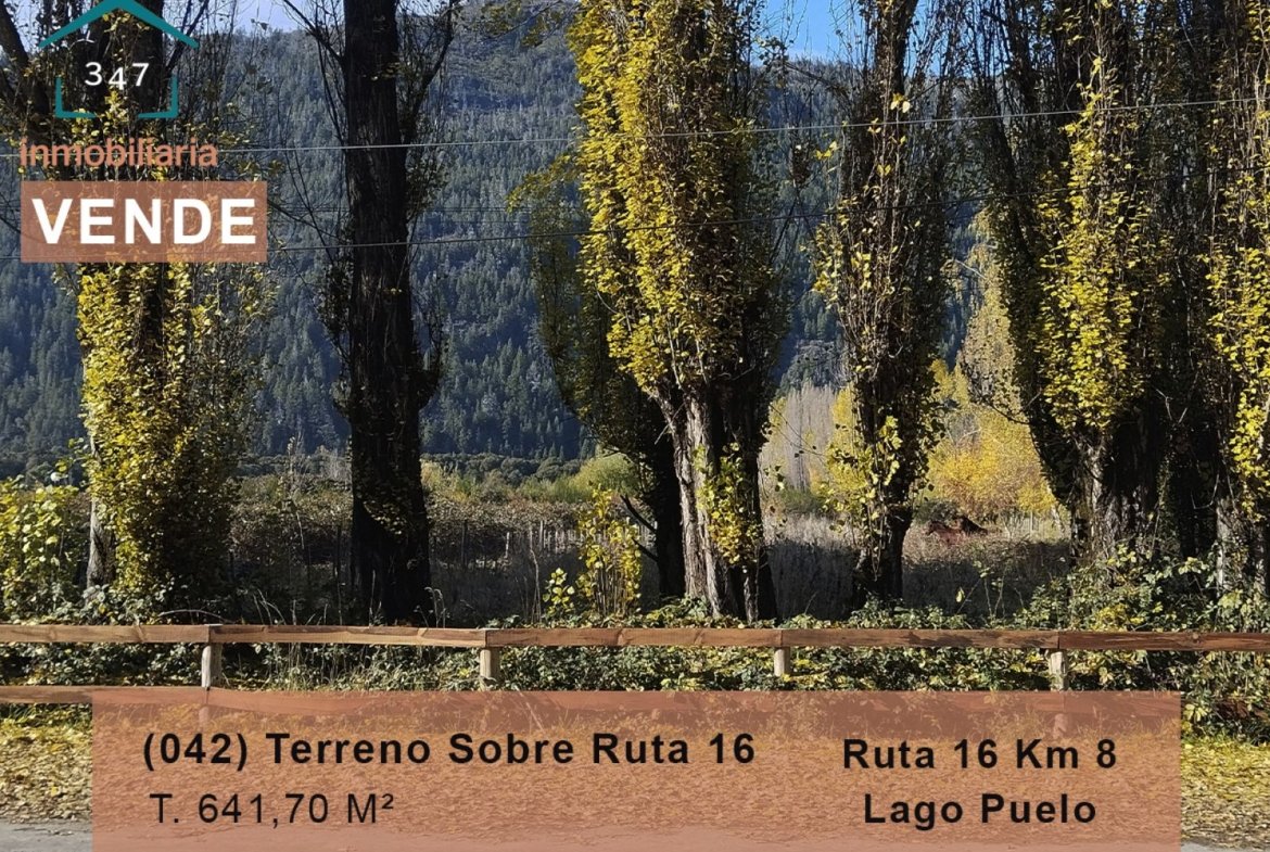 (042) LAGO PUELO (sobre frente a la Ruta 16)Terreno 640mtrs2