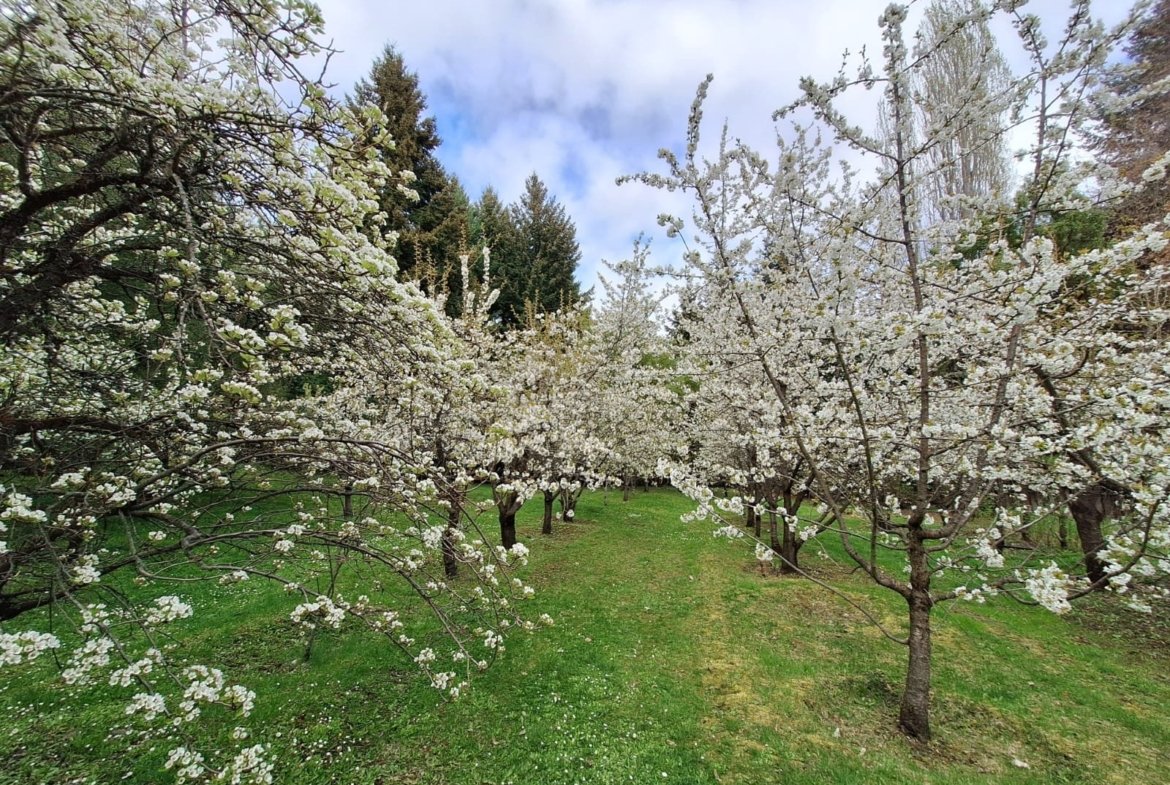 Producción frutal en el predio: cerezas, guindas, manzanas, ciruelas, frambuesas y nogales.