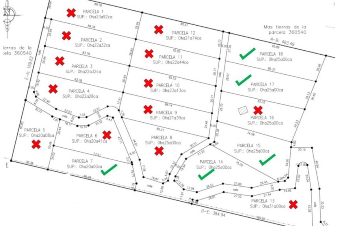 Precios de los terrenos disponibles: