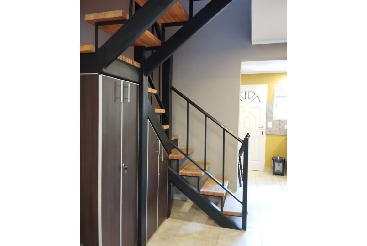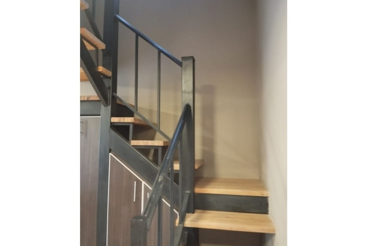 Escalera en hierro con escalones de madera y mueble empotrado