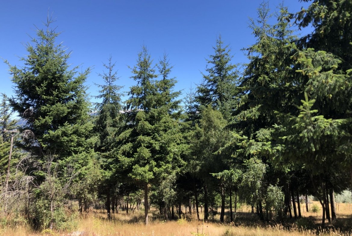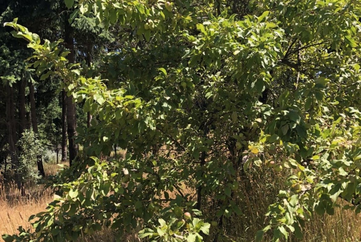 Árboles frutales, nativos y zona de pinar.