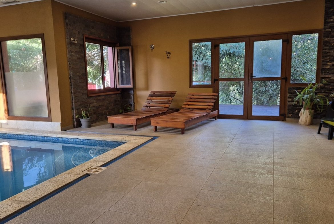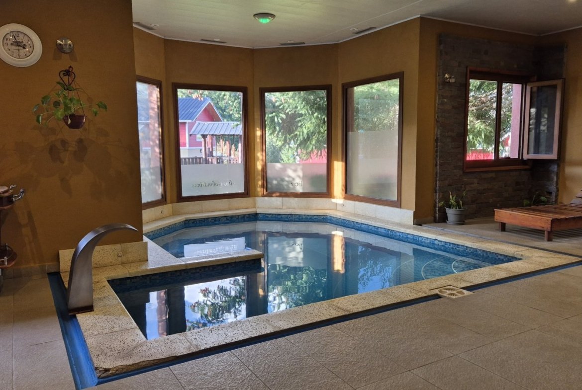 -Pileta interior climatizada de 30.000 L con vista panorámica y 6 posiciones de hidro: 4 asientos con 3 jets cada uno, una camilla ergonómica de relax con 8 jets y un cuello
