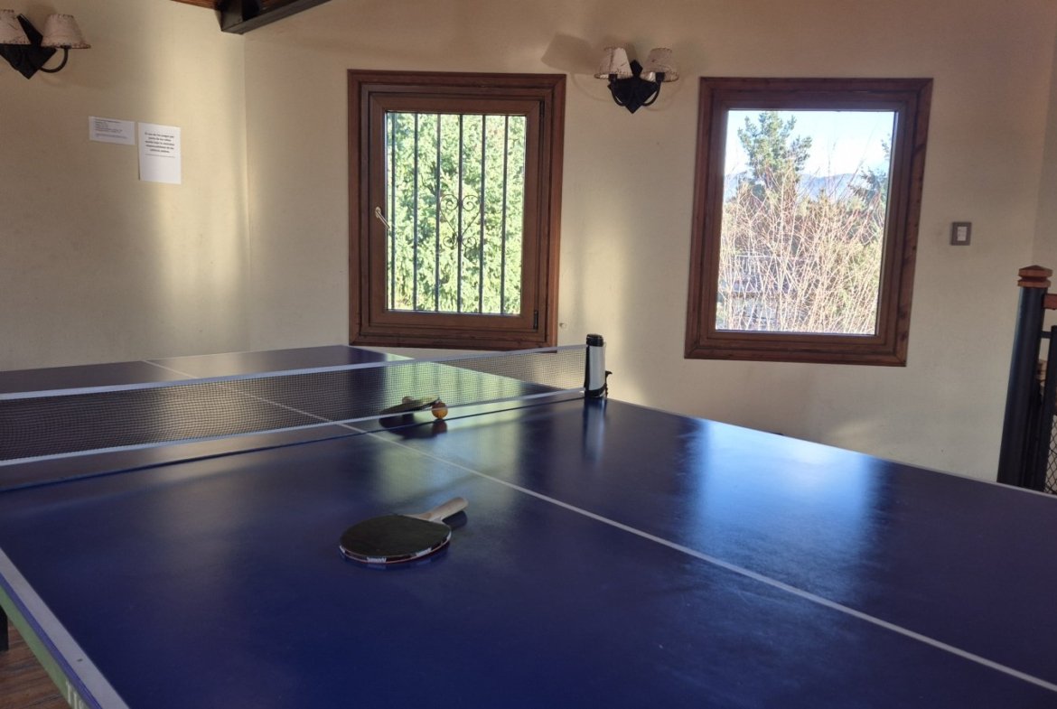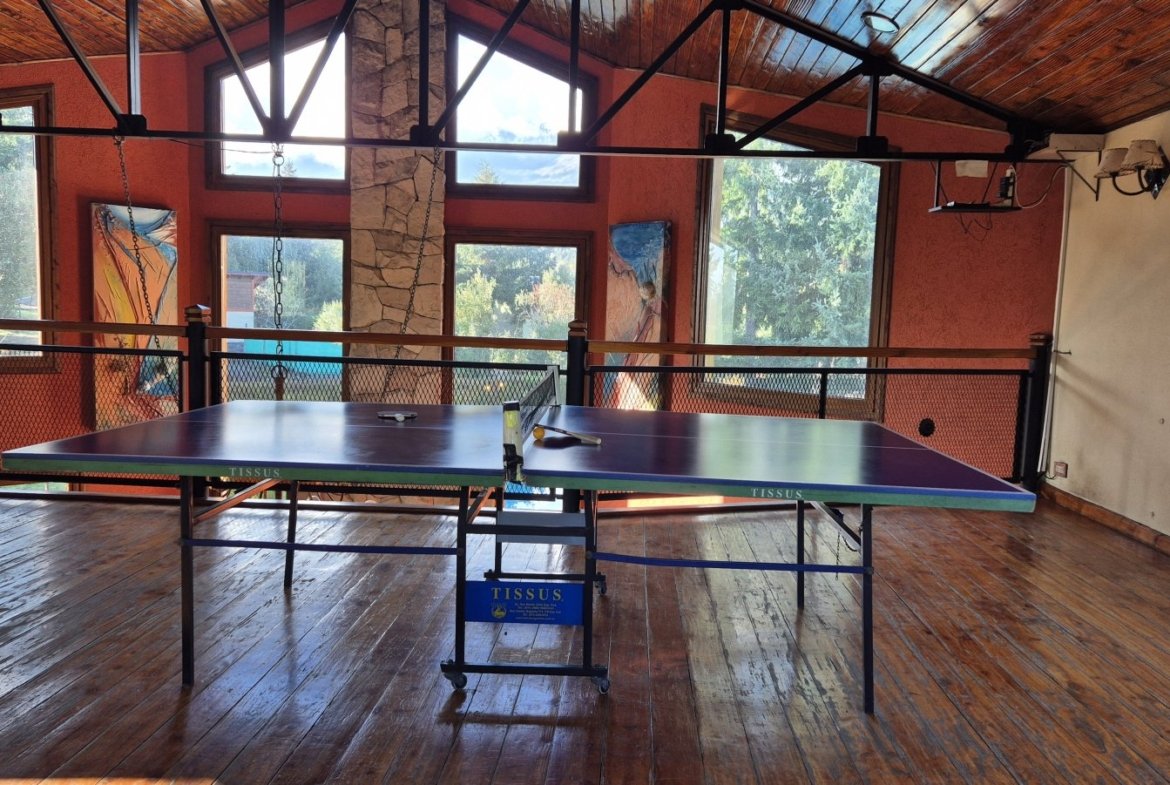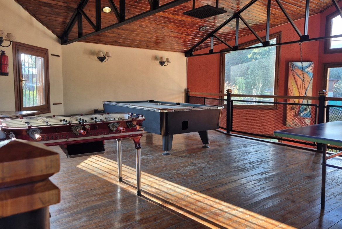 -Salón de usos múltiples, es un octógono con un imponente hogar revestido en piedra y con hermosas vistas, apto para 60 comensales con cocina completa y parrilla.