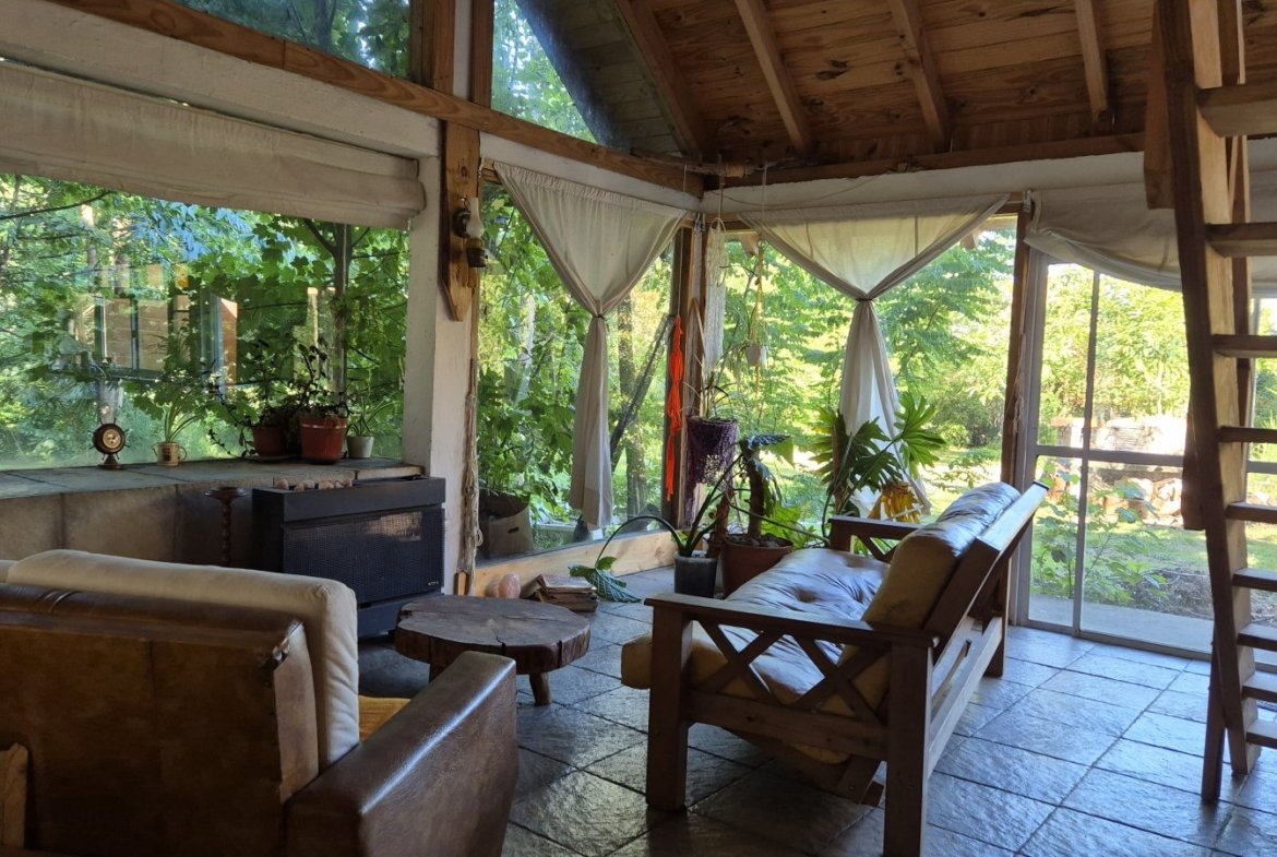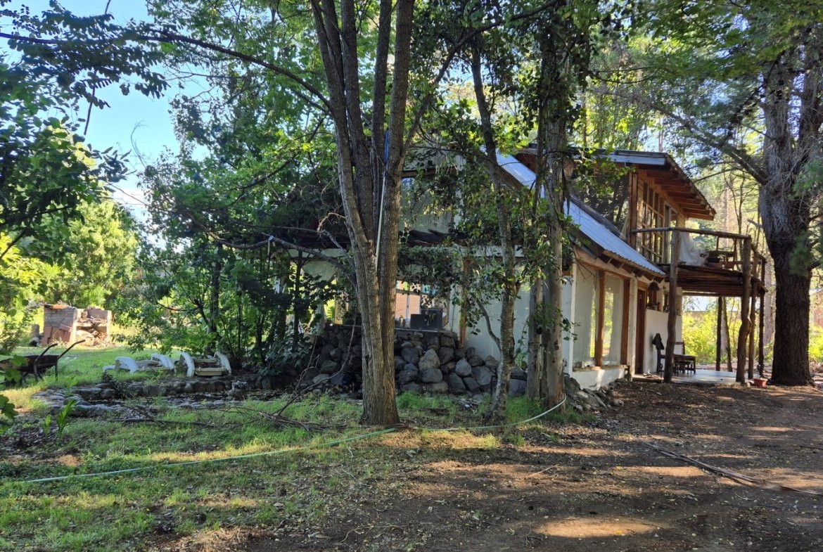 En el exterior, un gran patio de aproximadamente 800 m² invita a disfrutar del aire libre, con parrilla, árboles frutales y un paisaje abierto que transmite paz y privacidad.