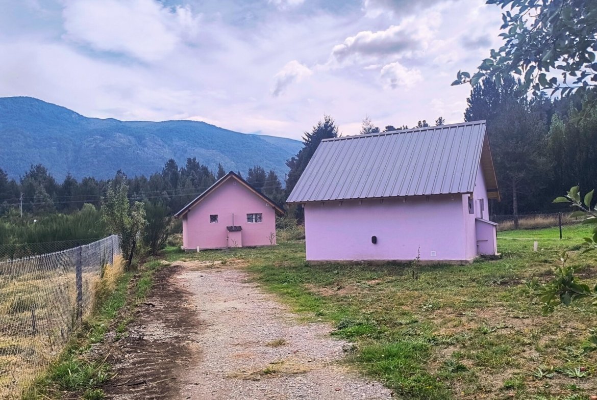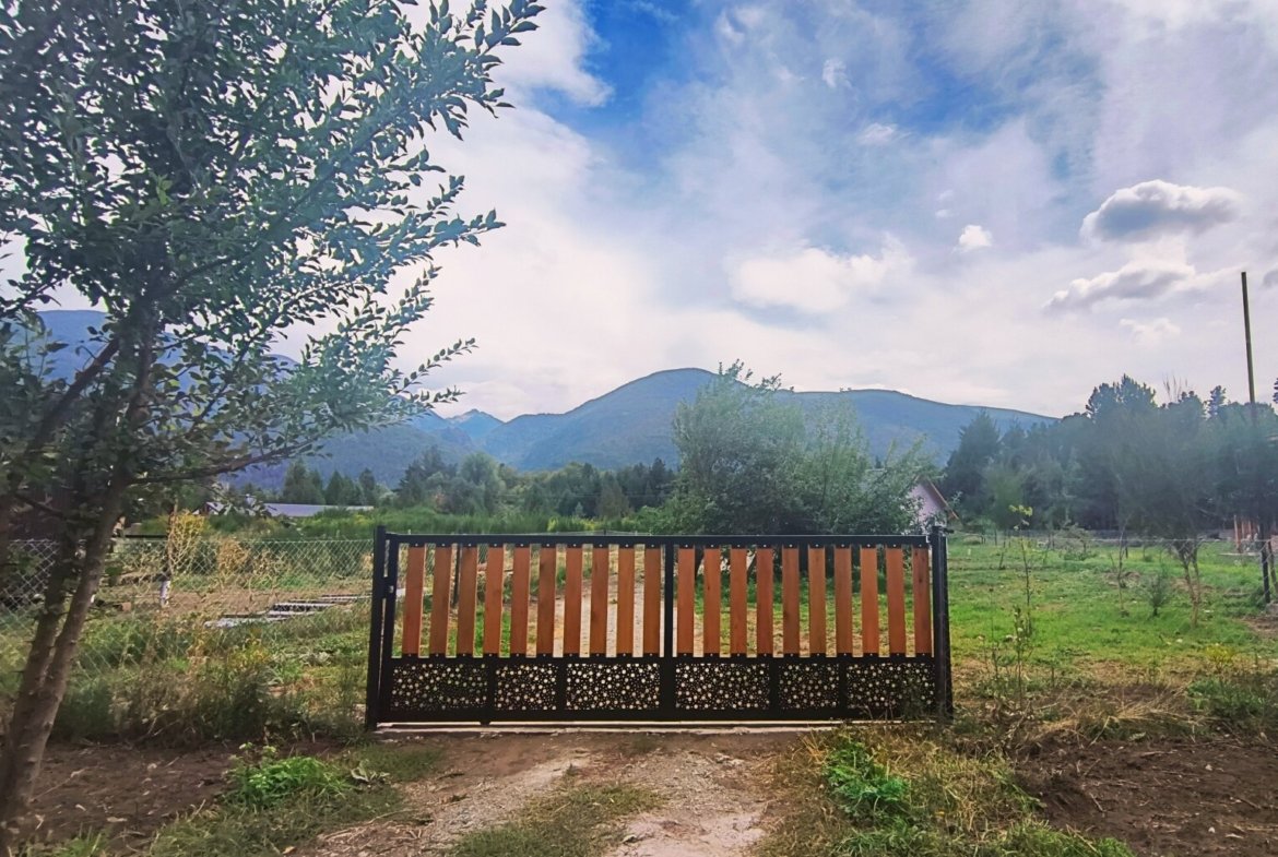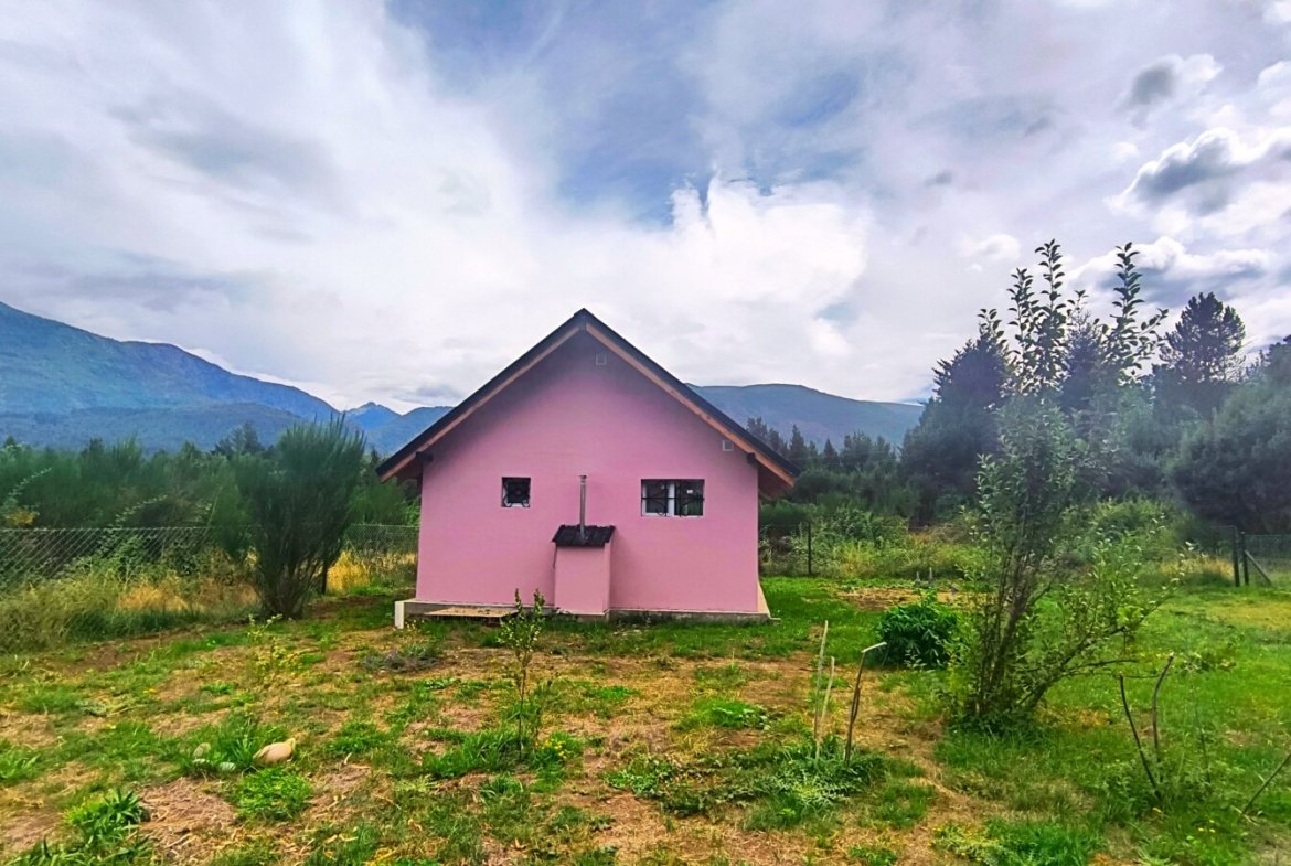 Con increíbles vistas a las montañas 360, implantadas en un barrio residensial tranquilo antes del ingreso al centro de Lago Puelo, tierra cultivable, árboles frutales, y árboles nativos en crecimiento (Pitras, Arrayanes, cerco vivo en desarrollo.